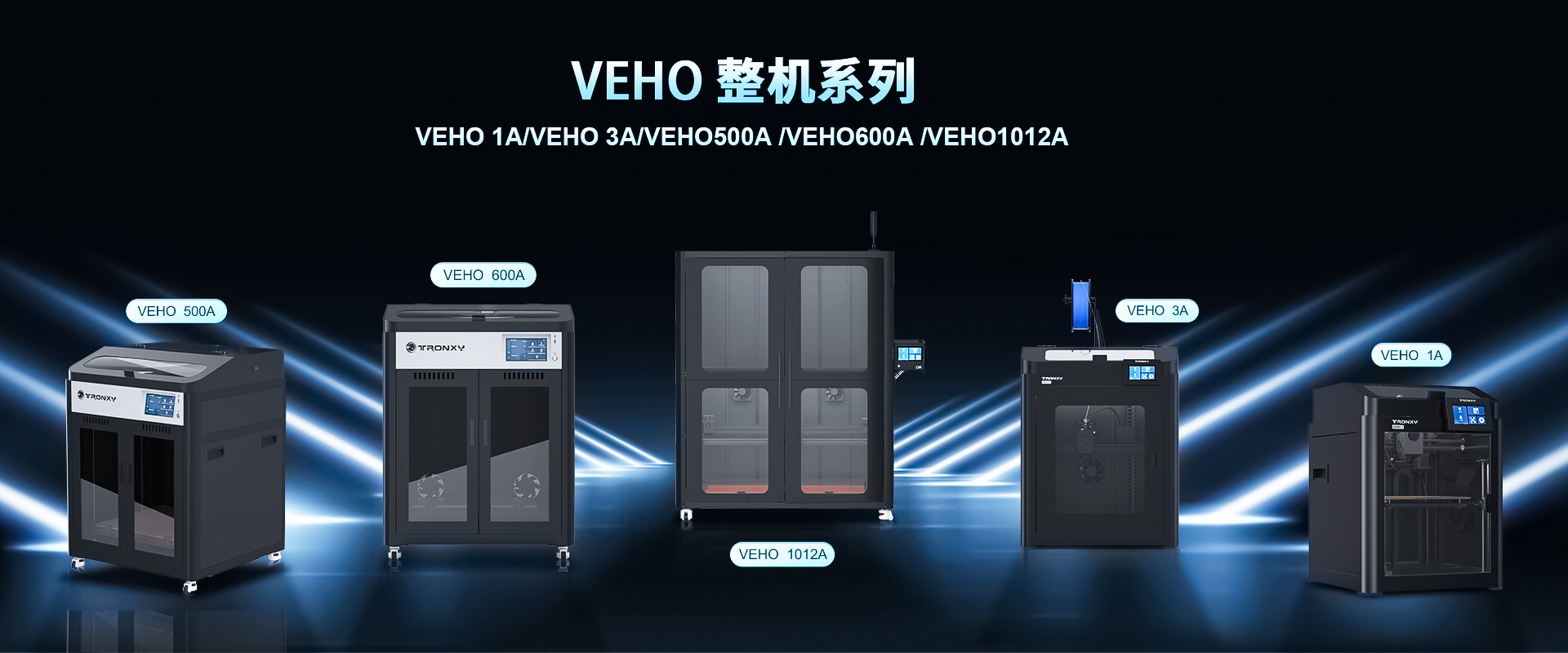 自主設計,定制生產線,可生產從桌面級到工業級等 尺寸從180mm到1.6米3D打印機